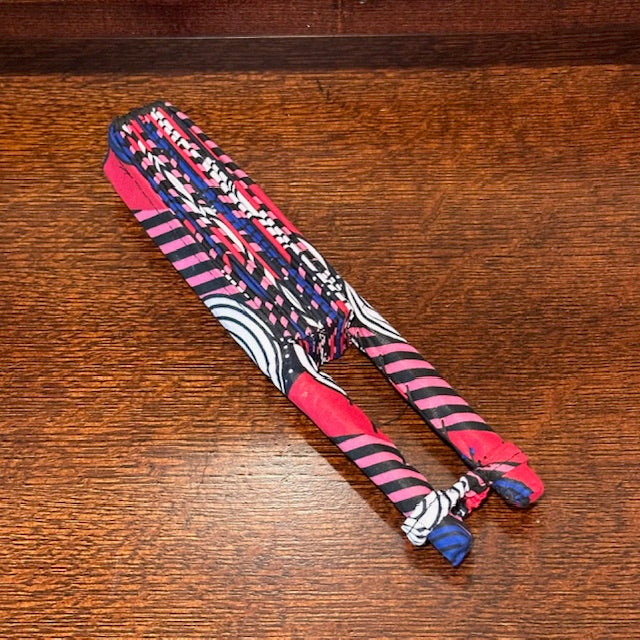 Cool off with these stylish handheld fans, beautifully covered in colorful fabric prints. Each fan contains a stretch-fabric clasp to keep the fan open or closed. Patterns and colors vary with each fan.